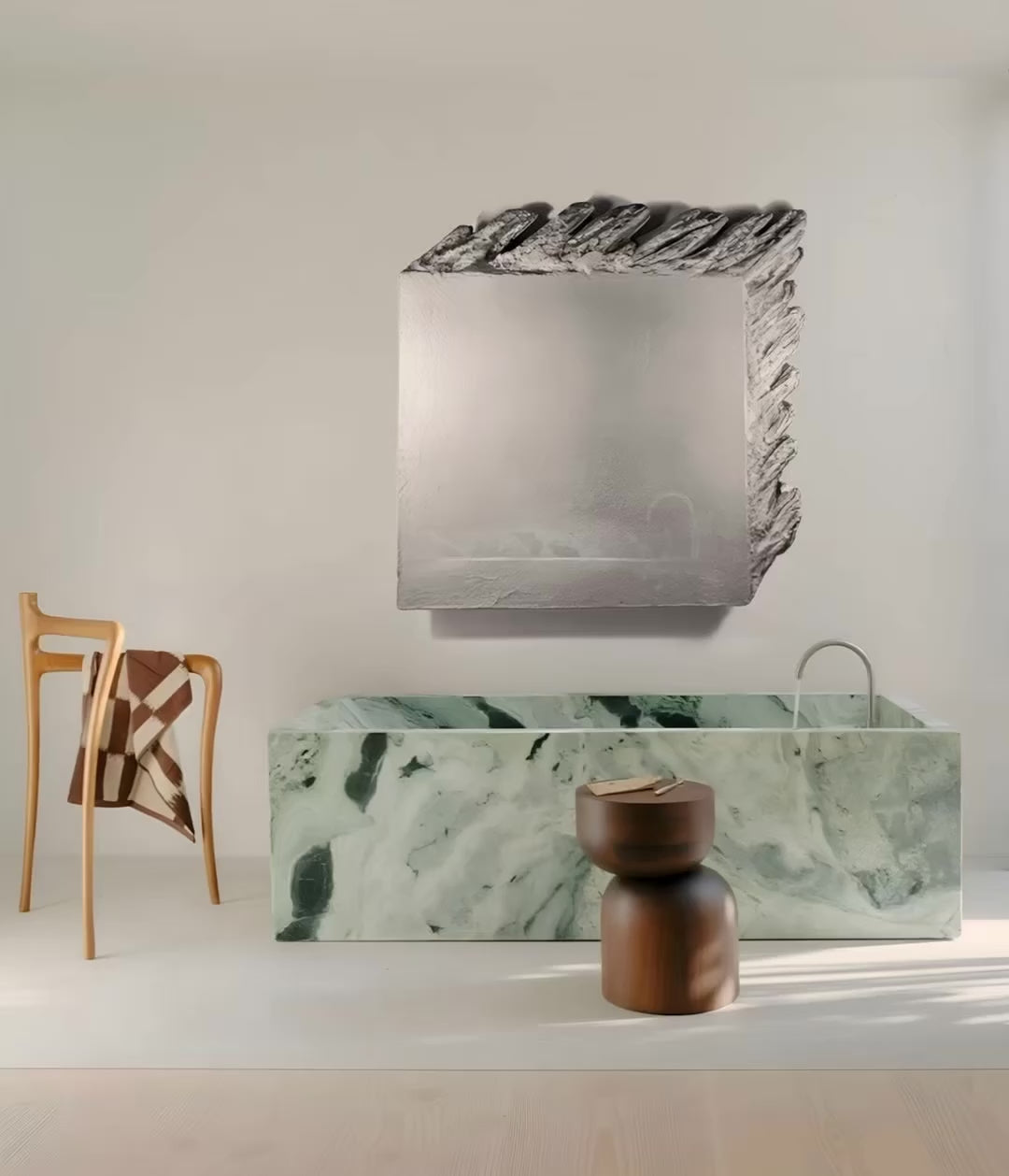 Materials: Specially designed light base, XPS, Gesso-plaster blend with PVA art medium, fiber concrete, and acrylic paint.